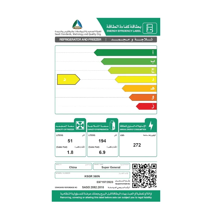 - تعمل بغاز تبريد R600a الصديق للبيئة لضمان أداء تبريد قوي مع كفاءة أعلى.