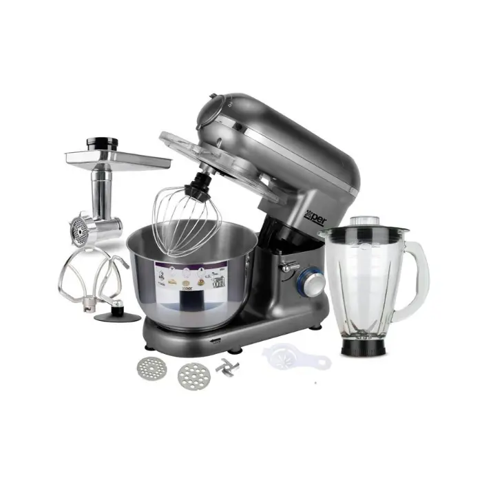 | الصنف | عجانة كهربائية اكسبير 4.5 لتر مع فرامة لحم – فضي |