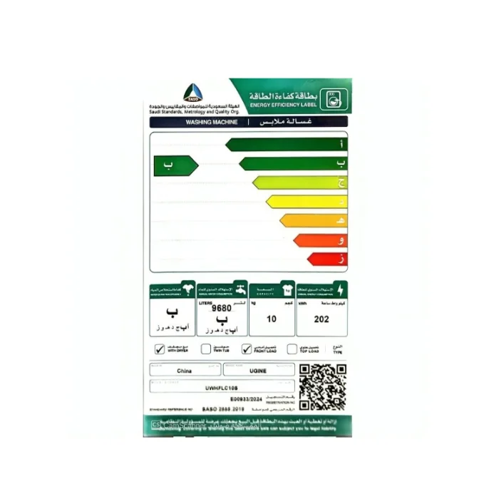غسالة يوجين فتحة أمامية 10 كيلو – تجفيف 100% – انفيرتر UWHFLC10S