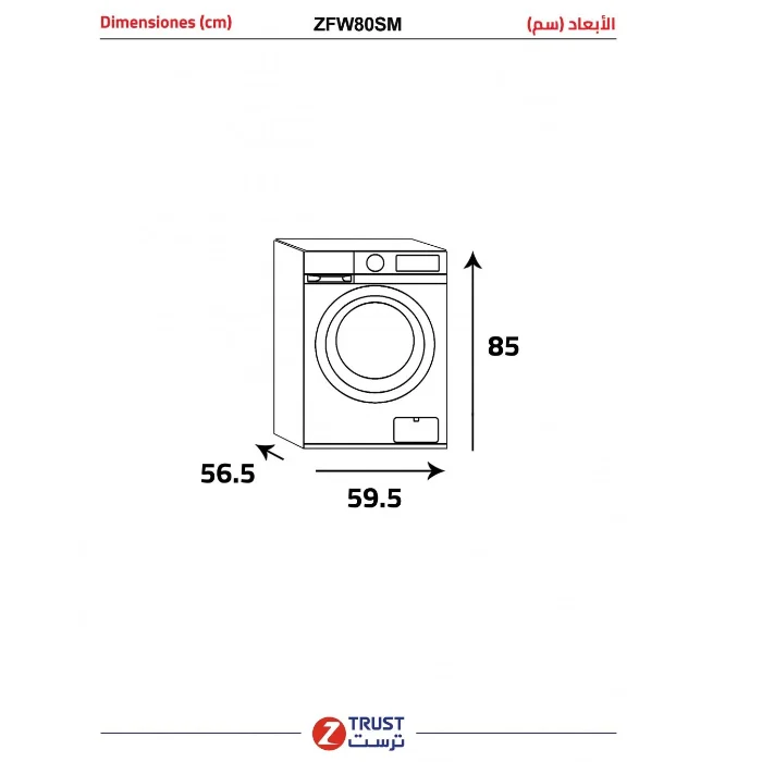غسالة 8 كيلو زيترست أمامية 15 برنامج – فضي Zfw80sm