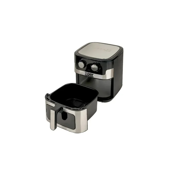 يتميز قلاية اكسبير هوائية بهيكل خارجي مصنوع من الفولاذ المقاوم للصدأ، مما يمنحه مظهرًا عصريًا أنيقًا يتناسب مع جميع المطابخ. هذا التصميم لا يقتصر على الشكل الجمالي فقط، بل يوفر أيضًا متانة عالية ومقاومة للتآكل والخدوش، مما يضمن بقاء الجهاز لامعًا وعمليًا لفترة طويلة مع الحفاظ على جودة الأداء اليومي.