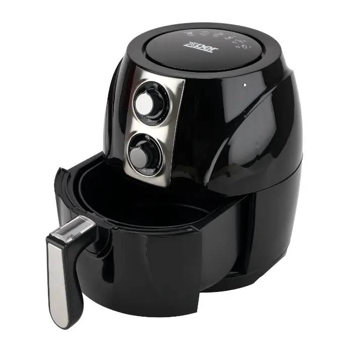 تأتي قلاية بدون زيت اكسبير بتصميم عصري باللون الأسود الأنيق، يضيف لمسة جمالية إلى مطبخك. حجمها المدمج يجعلها مثالية للمساحات الصغيرة، مع شكل عملي يسهل وضعها على أي سطح دون أن تشغل مساحة كبيرة.