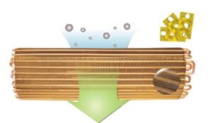 تم تزويد مكيف سبليت جيباس 32600 وحدة بريش ذهبية مقاومة للصدأ والتآكل، مما يعزز من عمر الوحدة ويضمن كفاءة عالية في الأداء حتى في الظروف البيئية القاسية، كما تساهم هذه الطبقة في تحسين عملية نقل الحرارة وتوفير استهلاك الطاقة.
