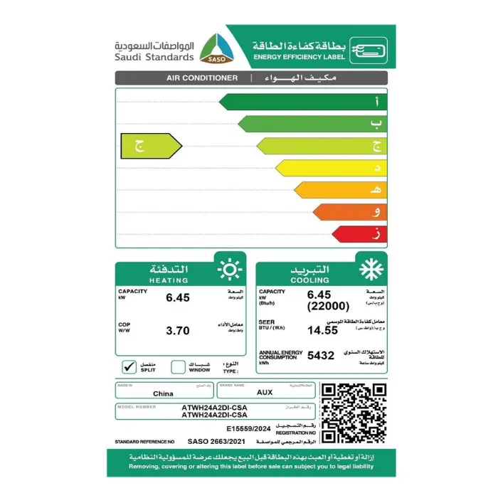 مكيف سبليت اوكس 22000 وحدة هايبر كول – إنفرتر – حار / بارد ATWH24A2DI-CSA