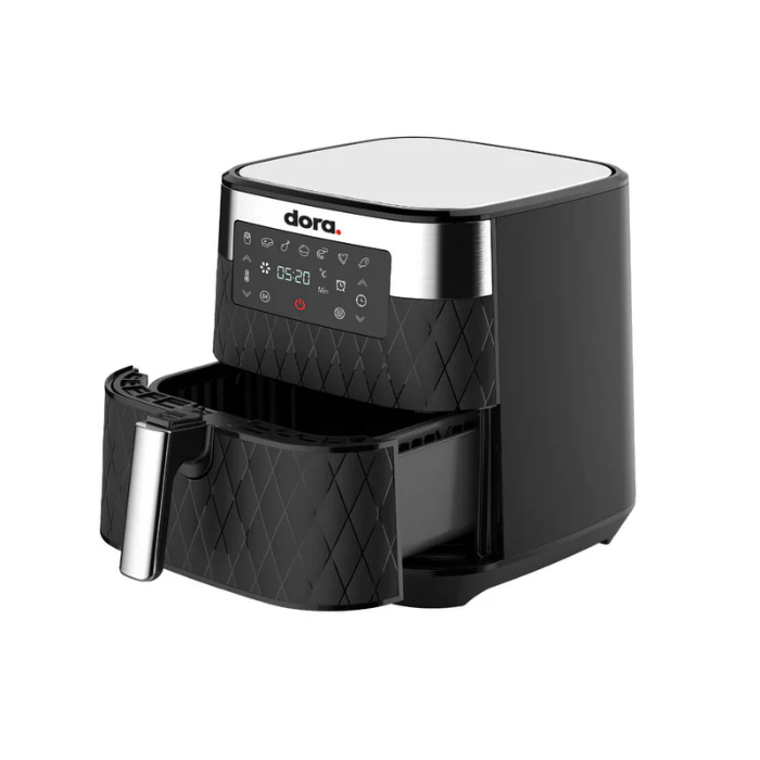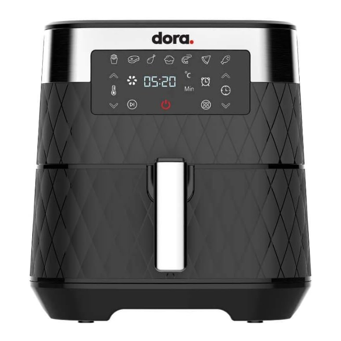 تتميز ايرفراير دورا بهيكل قوي مصنوع من خامات عالية الجودة باللون الأسود الأنيق، ما يضيف لمسة عصرية راقية إلى مطبخك. كما أن تصميمها المتين يضمن تحمل الاستخدام اليومي المكثف لفترات طويلة دون التأثير على الأداء أو الشكل الخارجي.