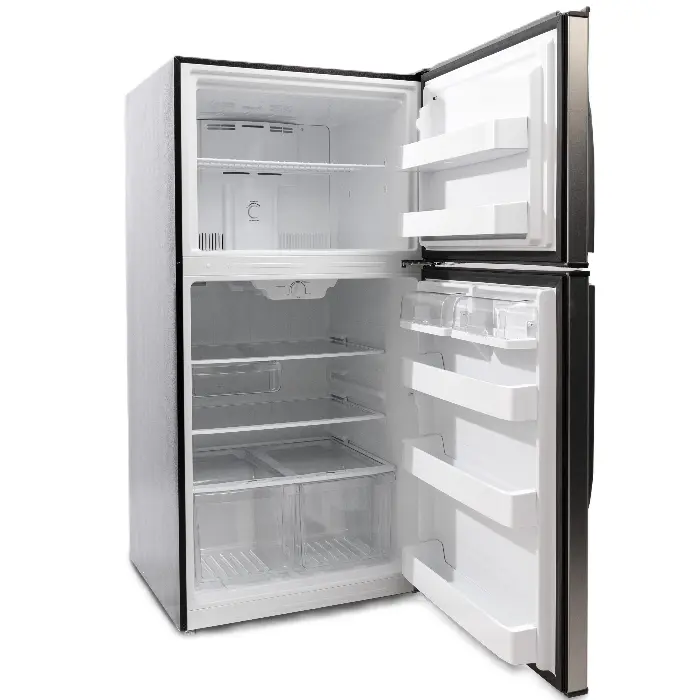 توفّر ثلاجة 21 قدم بابين يوجين مساحة تخزين كبيرة بسعة 595 لتر، مما يتيح لك حفظ كميات كبيرة من الأطعمة والمشروبات بكل سهولة. بفضل توزيع المساحة الداخلي الذكي، يمكنك تنظيم المحتويات بشكل مريح لتناسب احتياجات العائلة اليومية.
