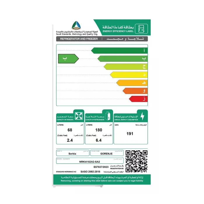 - نوع التبريد: No Frost / تبريد خالٍ من الصقيع