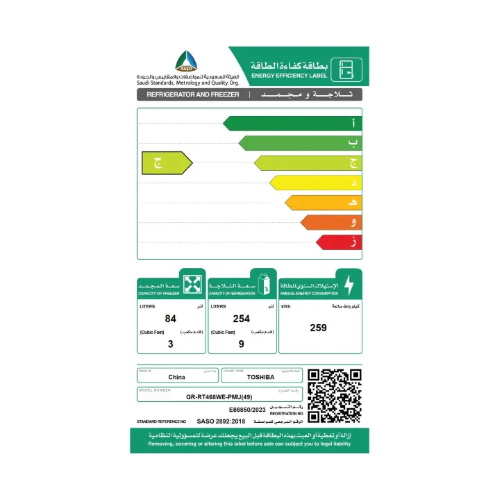 ثلاجة توشيبا بابين تتميز باستهلاك موفر للطاقة مع ضمان الضاغط، حيث تعمل بتقنية متطورة تقلل من استهلاك الكهرباء دون التأثير على كفاءة التبريد، مع توفير ضمان موثوق للضاغط يضمن أداءً طويل الأمد وراحة بال أكبر للمستخدم.