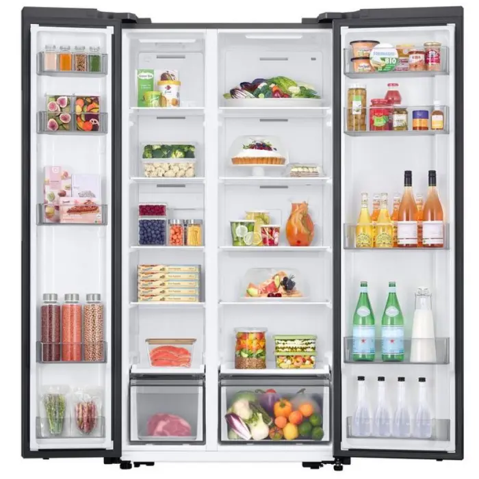 ثلاجة سامسونج مزودة بخاصية التحكم في مستوى الرطوبة، حيث تتيح لك ضبط الرطوبة داخل الأدراج والمقصورات حسب نوع الطعام المخزن، مثل الخضروات والفواكه، للحفاظ على نضارتها وقوامها الطبيعي لفترات أطول. هذه التقنية تمنع جفاف الأطعمة أو فسادها السريع، وتضمن تخزينًا صحيًا وفعالًا، مع الحفاظ على جودة الطعام ونكهته الطبيعية داخل الثلاجة بشكل مستمر