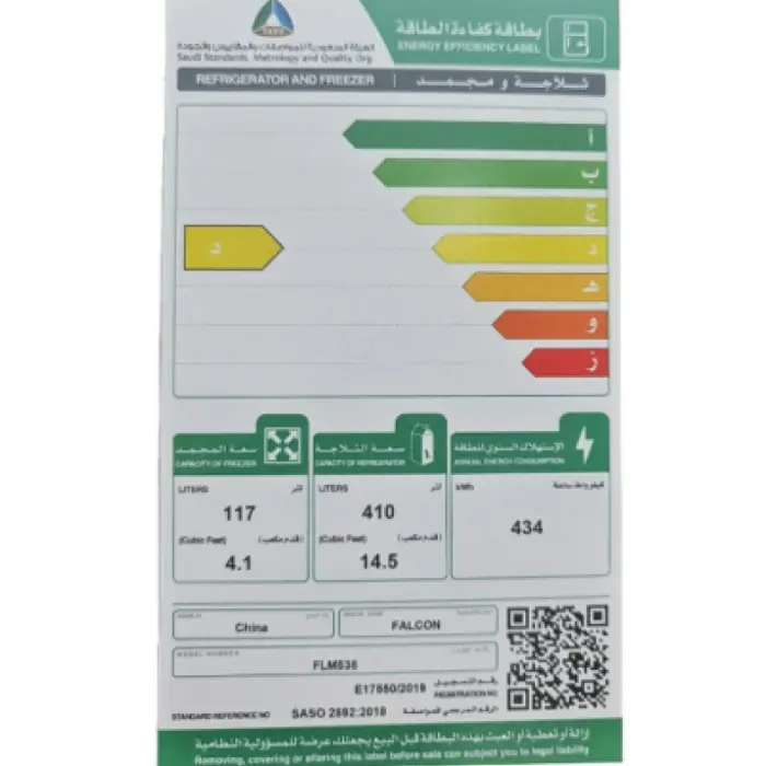 ثلاجة 19 قدم بابين فالكون – ابيض flm538