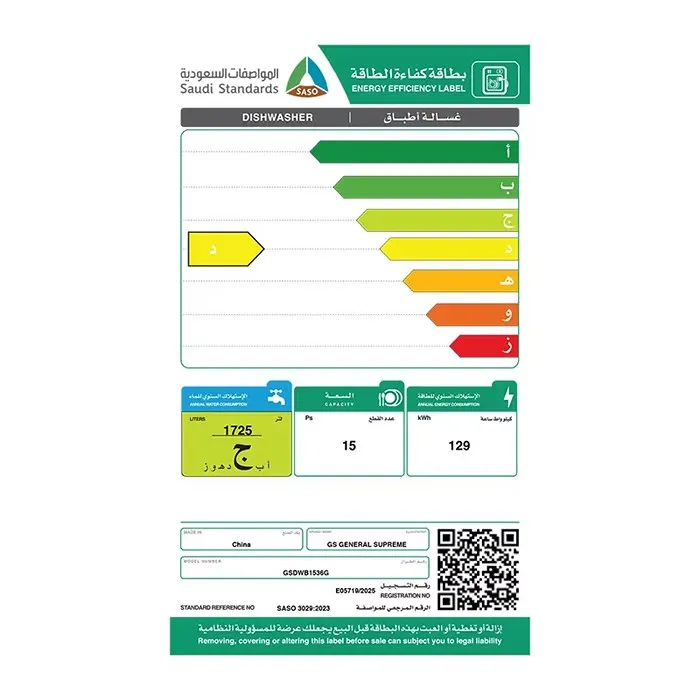 جلاية صحون بلت ان جنرال سوبريم 6 برامج – 15 مكان – فضي GSDWB1536G