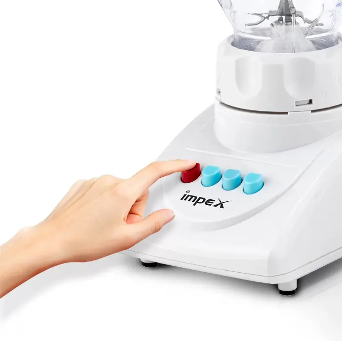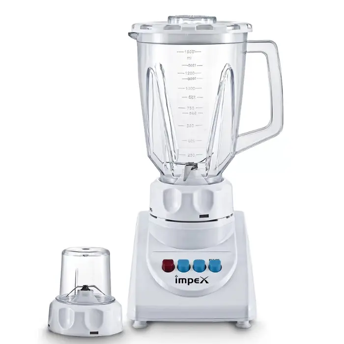 يأتي خلاط كهرباء إمبكس بوعاء كبير بسعة 1.5 لتر مصنوع من خامات قوية وآمنة للطعام، مما يسمح بتحضير كميات كافية لجميع أفراد الأسرة في مرة واحدة. هذه السعة تجعله عمليًا جدًا عند تحضير العصائر الطازجة أو الخلطات المتنوعة، سواء للعزومات أو الاستخدام اليومي.
