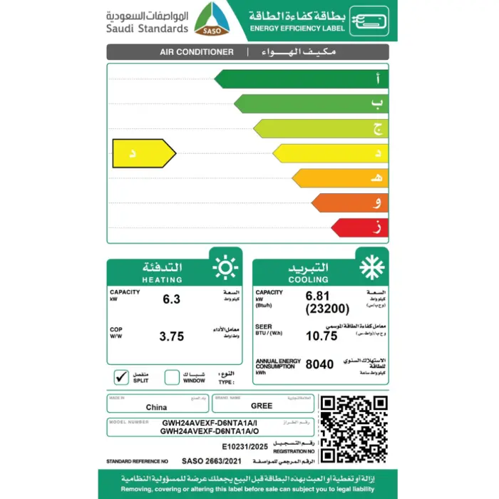 | الموديل | GWH24AVEXF-D6NTA1A |