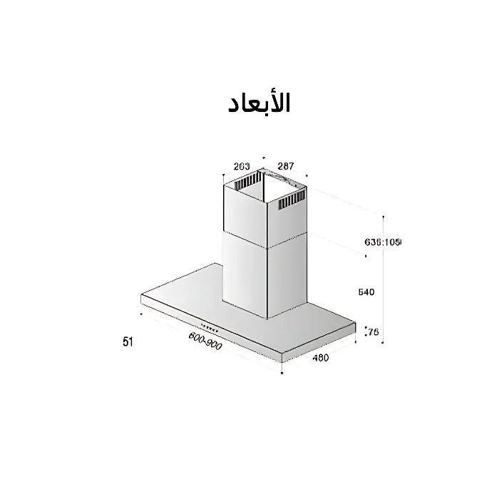 - شفاط مطبخ بعرض 90 سم مناسب لمعظم المواقد الكبيرة.