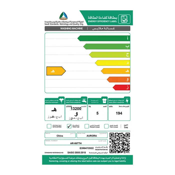 ما هي مميزات غسالة أرورا حوضين – 5 كيلو – أبيض AR-06TTH ؟