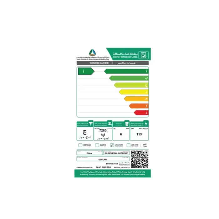 الوسوم: غسالة 6 كيلو, غسالة تعبئة أمامية, غسالة جنرال سوبريم, غسالة فضي