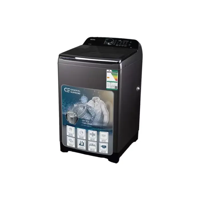 غسالة اتوماتيك جنرال سوبريم مجهزة ببرنامج تنظيف الحوض الذاتي للحفاظ على الحلة نظيفة وخالية من الرواسب أو البكتيريا، مما يزيد من كفاءة الأداء ويطيل عمر الجهاز.
