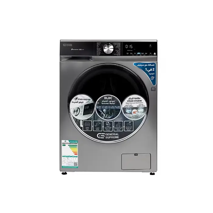 غسالة اتوماتيك 8 كيلو جنرال سوبريم أمامية – ستيل GSFLA0806DM
