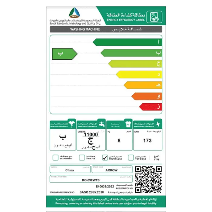 - معدل الإستهلاك السنوي للطاقة : 173 كيلو وات/ساعة