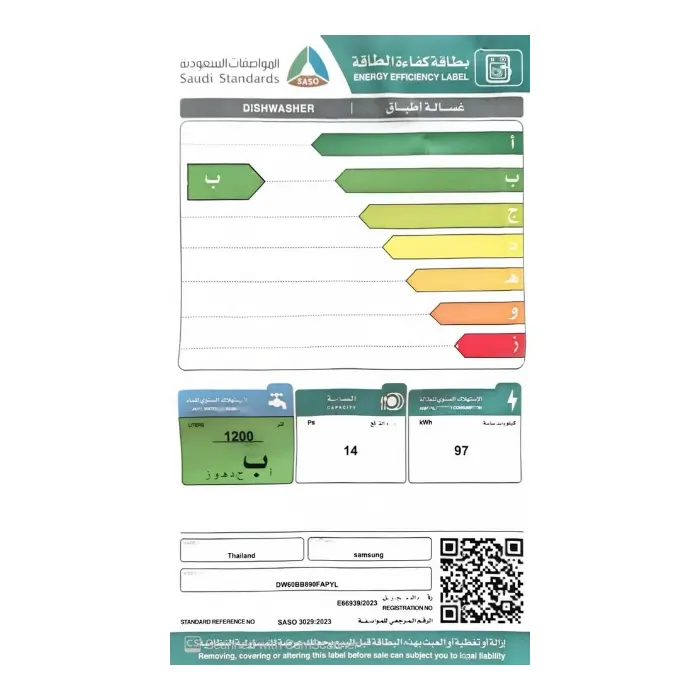تدعم غسالة اطباق سامسونج خاصية نصف الحمولة، مما يتيح لك غسل كمية أقل من الصحون بكفاءة عالية دون إهدار الماء أو الطاقة. هذه الميزة مثالية للاستخدام اليومي، حيث توفر الوقت وتخفض استهلاك الموارد مع الحفاظ على أداء غسيل مثالي لكل دورة.