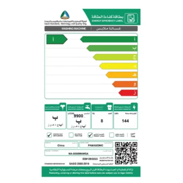 الوسوم: غسالة 8 كيلو, غسالة باناسونيك, غسالة تعبئة امامية