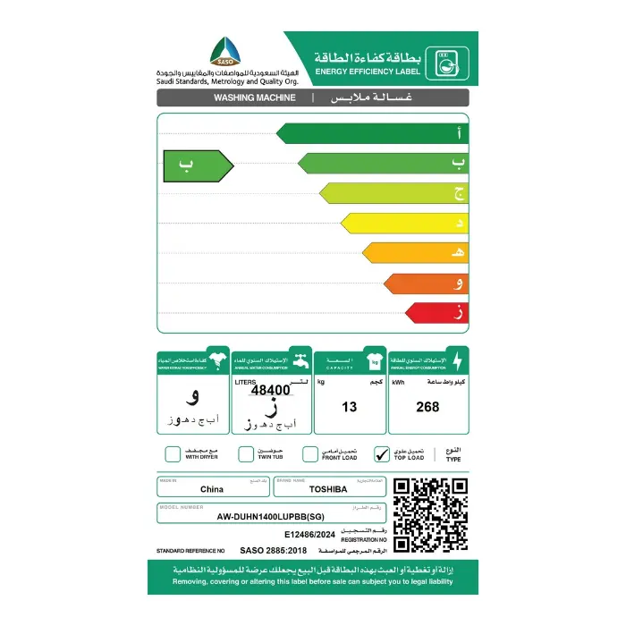 - سعة كبيرة 13 كجم للملابس العائلية