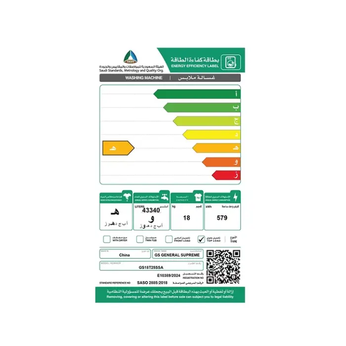 تقدم غسالة جنرال سوبريم 8 برامج غسيل متخصصة لتلبية جميع احتياجات الغسيل، سواء للملابس اليومية، الأقمشة الحساسة، أو الملابس الثقيلة والمفروشات. هذه البرامج المصممة بعناية تضمن نتائج تنظيف مثالية دون الإضرار بالأنسجة، وتوفر لك المرونة الكاملة لاختيار البرنامج الأنسب لكل غسلة.