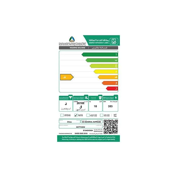 الغسالة جنرال سوبريم تأتي بسعة 10 كيلو، وهي مثالية للعائلات متوسطة الحجم، حيث تتيح غسل كميات كبيرة من الملابس في دورة واحدة دون عناء. هذه السعة توفر وقتك وجهدك، وتمنحك مرونة أكبر للتعامل مع الغسيل اليومي أو الأحمال الثقيلة مثل البطاطين والمفروشات.
