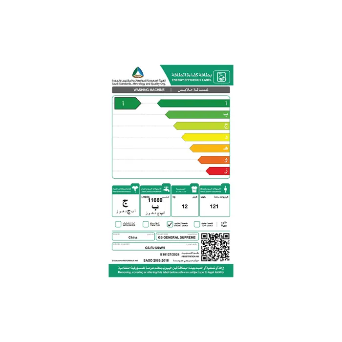غسالة ١٢ كيلو جنرال سوبريم امامية 14 برنامج – فضي GSFL120WH