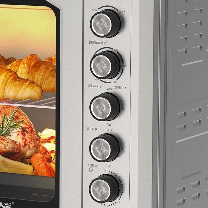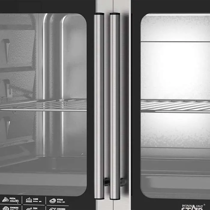 يأتي فرن كهربائية ويننج ستار بسعة ضخمة تصل إلى 120 لتر، ما يجعله مثالياً للعائلات الكبيرة أو لمن يحبون تحضير وجبات متنوعة دفعة واحدة. مع هذه السعة الكبيرة، يمكنك خبز البيتزا والخبز والشوي والتحمير في وقت واحد دون الحاجة لتكرار عملية الطهي، ما يوفر الوقت والجهد ويجعل تجربة الطهي أكثر متعة وراحة.