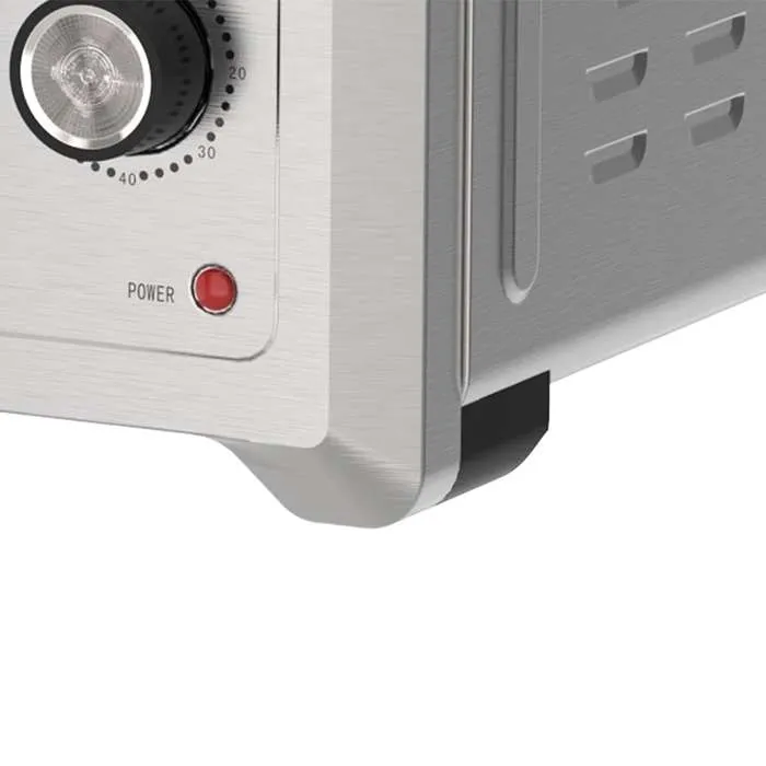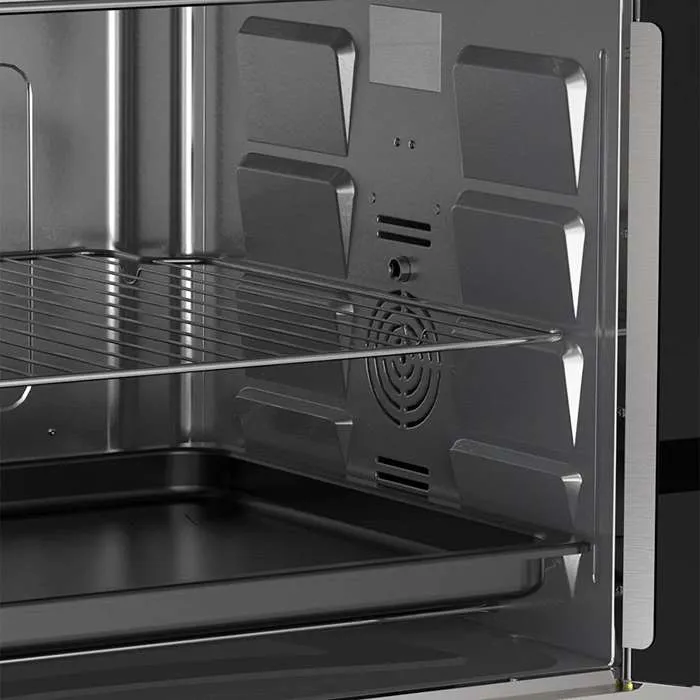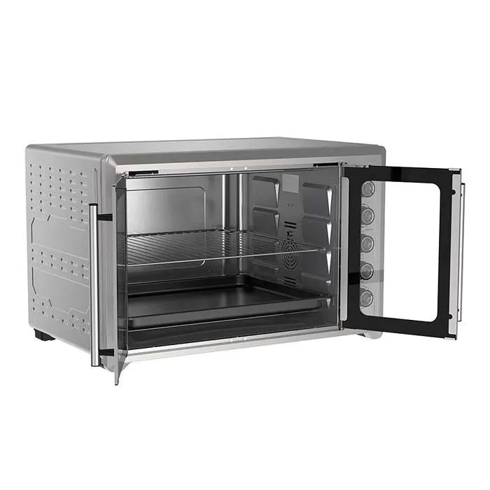 - ملحقات كاملة: صينية خبز وبيتزا، رف كرومي، مقبض، شوكة سحب، سيخ دوار