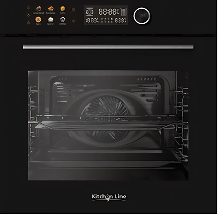 يتميز فرن كيتشن لاين بتصميم عصري أنيق باللون الأسود، ما يجعله مناسبًا للمطابخ الحديثة ويضيف لمسة فخامة. كما أنه من نوع بلت إن (Built-in) الذي يندمج داخل وحدات المطبخ ويوفر مساحة ويعطي شكلًا مرتبًا.