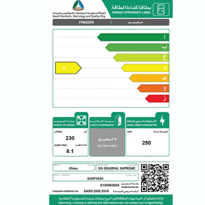 فريزر أرضى جنرال سوبريم 8 قدم – أبيض GSHF303X