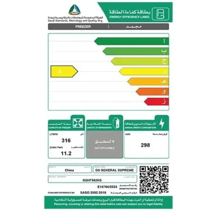 الفريزر جنرال سوبريم يتميز بـ مساحة تخزين واسعة تمنحك القدرة على حفظ كميات كبيرة من الأطعمة والمجمدات بكل سهولة، مما يجعله مثاليًا للعائلات الكبيرة أو للاستخدام اليومي المكثف. بفضل هذا التصميم العملي، يمكنك تنظيم المحتويات بشكل مريح والوصول إليها بسرعة، مع ضمان الاستفادة القصوى من كل جزء من المساحة الداخلية.