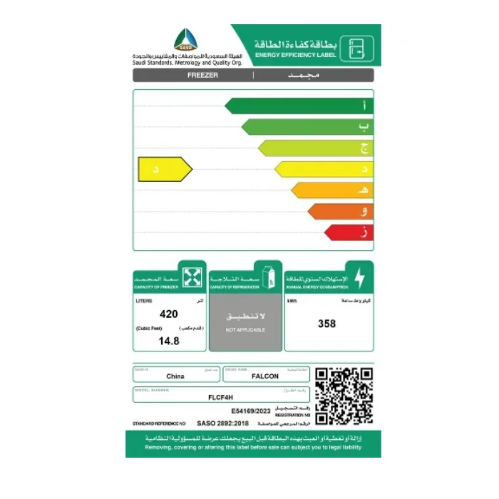 يأتي الفريزر مع تردد عالي الكفاءة يعمل بجودة كبيرة بشحنه من غاز التبريد فئة R600a ويصنف هذا الغاز كصديق للبيئة يمكن الفريزر من إتمام عمليه التبريد بشكل سريع ويضمن كفاءة التبريد كما يعمل أيضا في الحفاظ علي البيئة نظيفة من ملوثات الجو