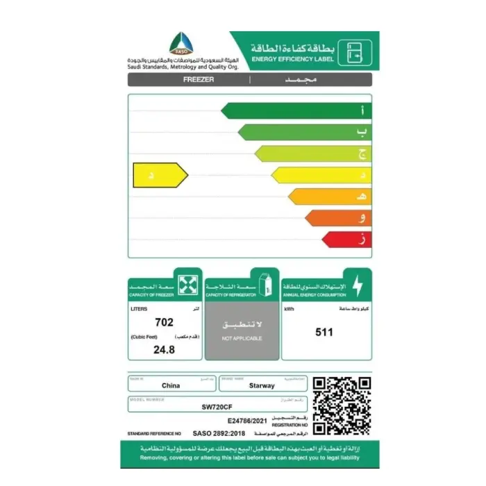 يعمل الفريزر بكفاءة تشغيل عالية تضمن أداءً ثابتًا على مدار اليوم، حتى مع الاستخدام المكثف، مما يجعله خيارًا موثوقًا لتخزين الأطعمة لفترات طويلة دون تراجع في الأداء.