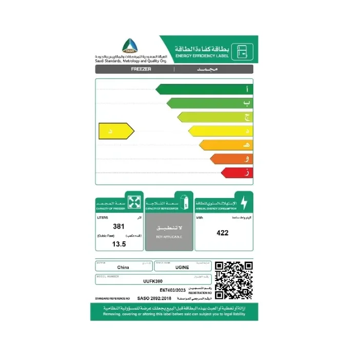 - السعة اللترية : 381 لتر
