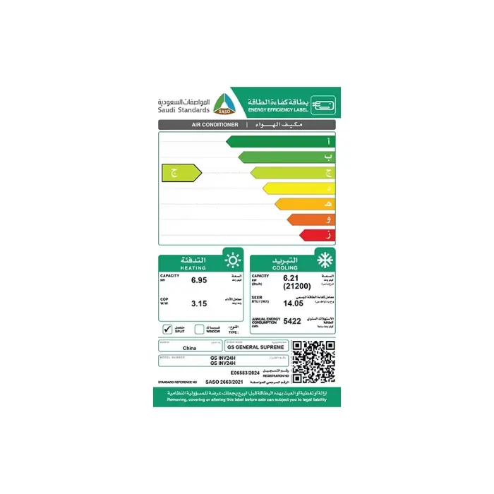 مكيف اسبلت جنرال سوبريم 21200 وحدة – إنفرتر – حار / بارد GSINV24H