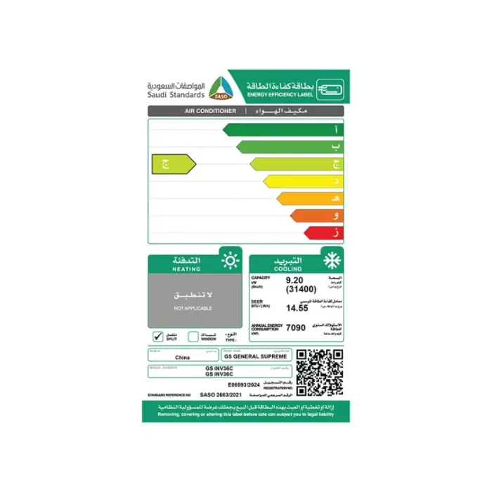 مكيف جنرال سوبريم سبليت 31400 وحدة – بارد GSINV36C