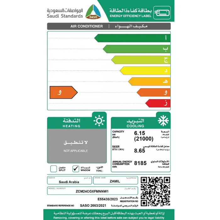 مكيف الزامل شباك 21000 وحدة – بارد ZCM24CGXFMNNW1