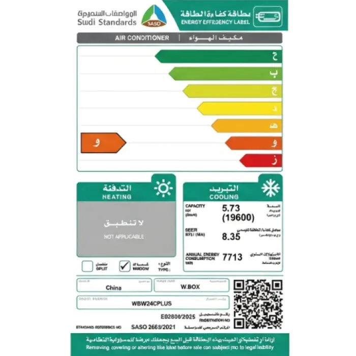 مكيف شباك دبليو بوكس بلس 19600 وحدة – بارد WBW24CPLUS