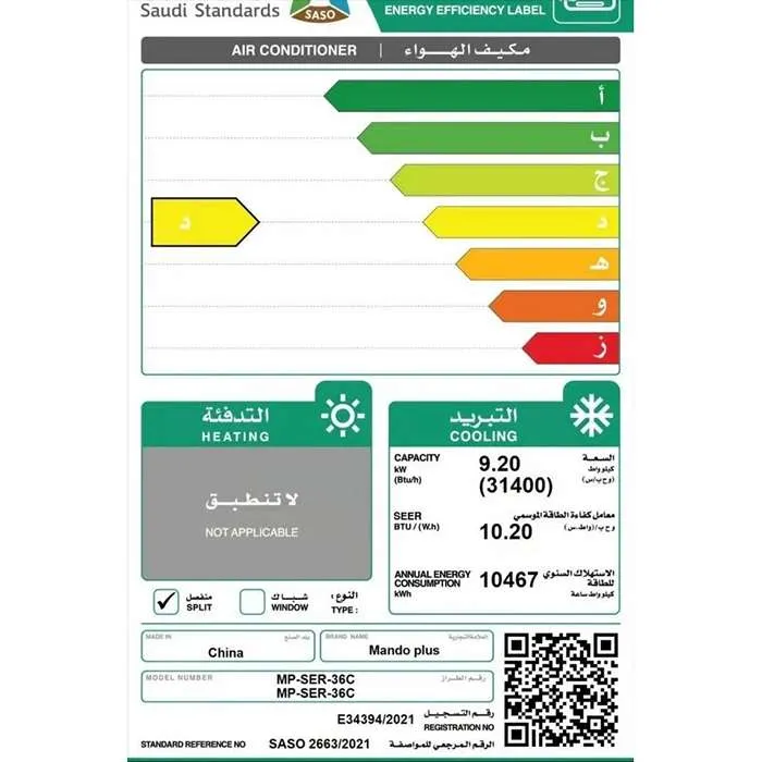 | الصنف | مكيف سبليت ماندو بلس 31400 وحدة – بارد |