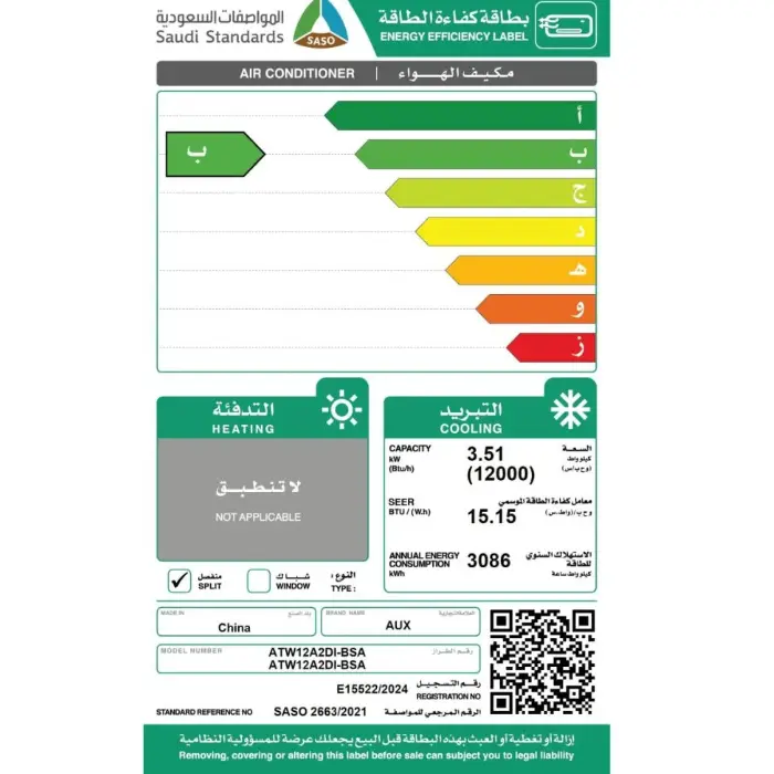 - تقنية الإنفرتر لتوفير استهلاك الطاقة
